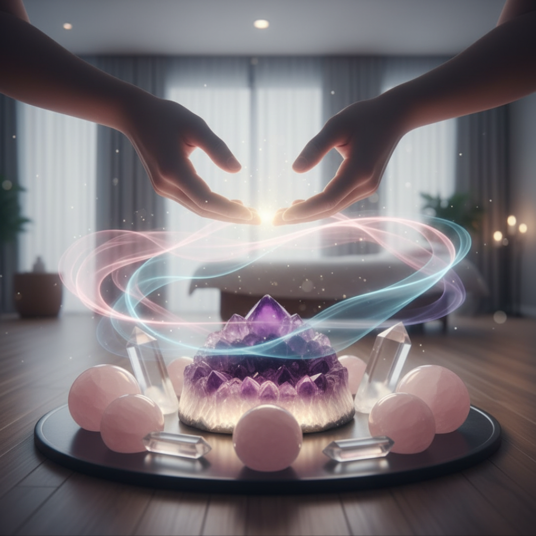 Reiki energy flows through your body and energy field to clear blockages, reduce stress, and bring a deep sense of peace. Crystals are intuitively selected to amplify healing and restore harmony on every level — mind, body, and soul.